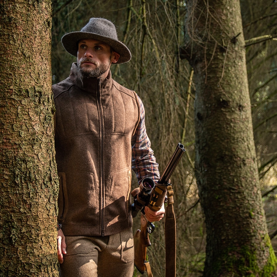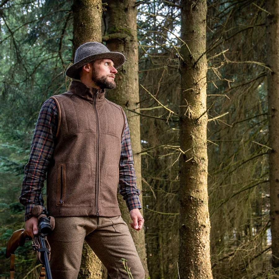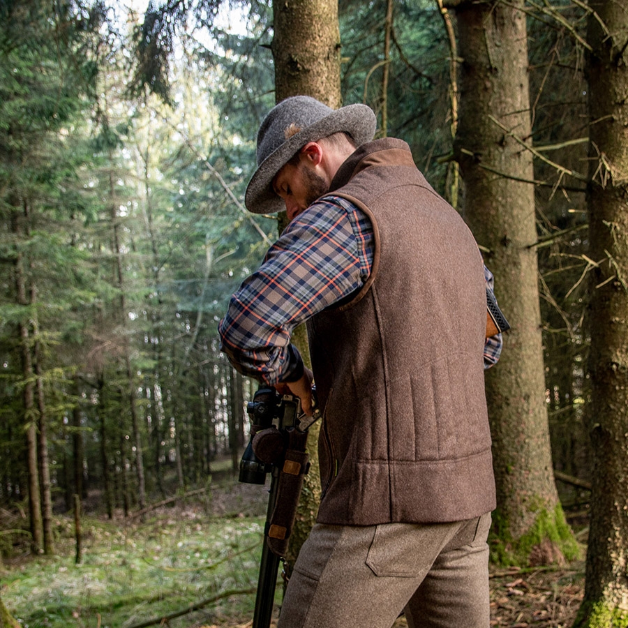 Jagdweste aus bestem Loden und Leder für Jagd, Schießstand und Freizeit.