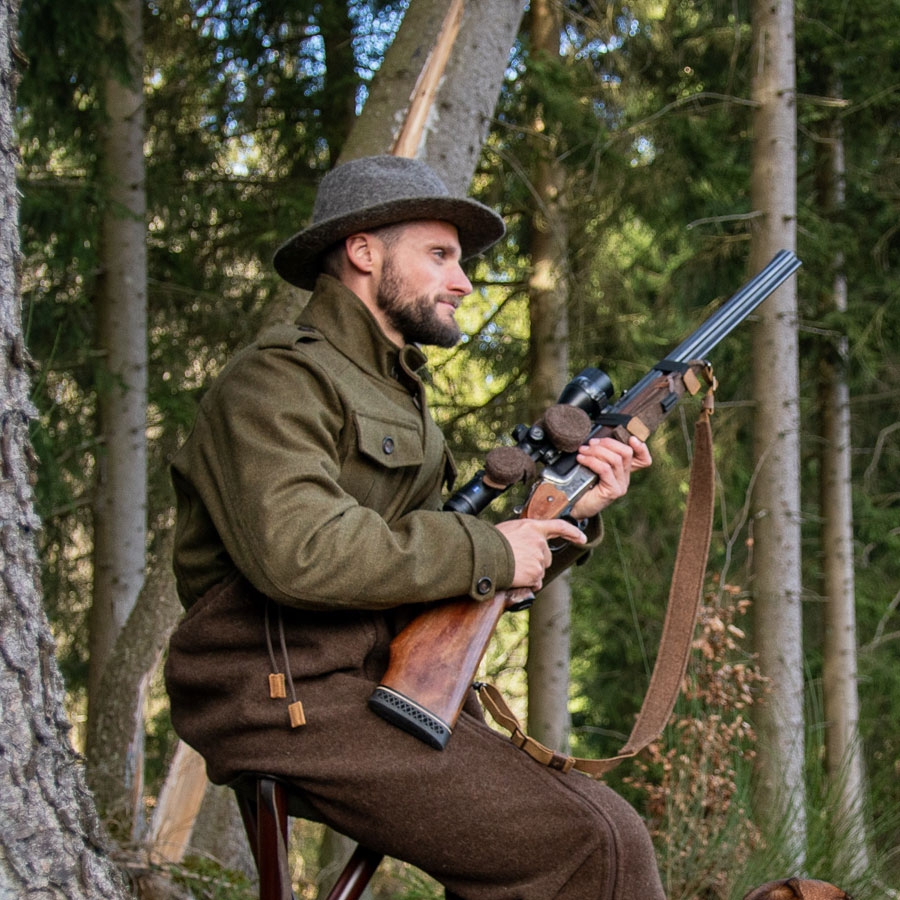 Die Lodenjacke "Wilderich" ist eine leichte Jagdjacke sowohl für die Übergangszeit als auch für kühlere Sommertage. Sie ist im Gegensatz zu unserem Winterjackenmodell "Vitus" mit einem leichten, nicht wattierten Innenfutter ausgestattet, denn der Loden liefert in den milderen Zeiten ausreichend Wärme.