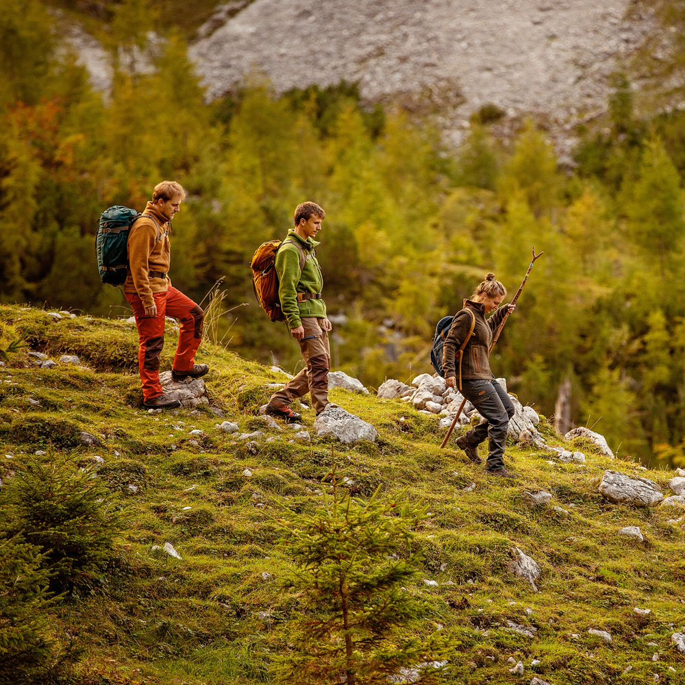 Wer sich in der Natur bewegt, möchte möglichst nicht auffallen. Loden ist ein leiser Stoff. Er raschelt nicht und macht auch sonst keine auffälligen Geräusche, die uns auf unseren Touren als Eindringling in der Natur verraten würden. Sogar in der Wahl unserer Farben achten wir auf natürliche Töne, die sich gut in die Natur einfügen.