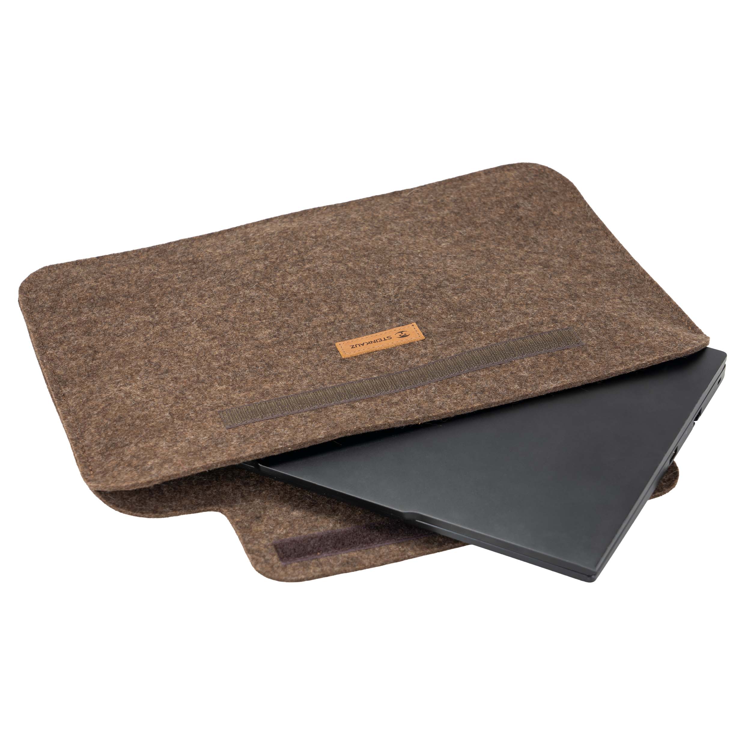 Die herausnehmbare Filzhülle bietet zusätzlichen Schutz, selbst wenn man den Computer mal separat mitnehmen möchte.
