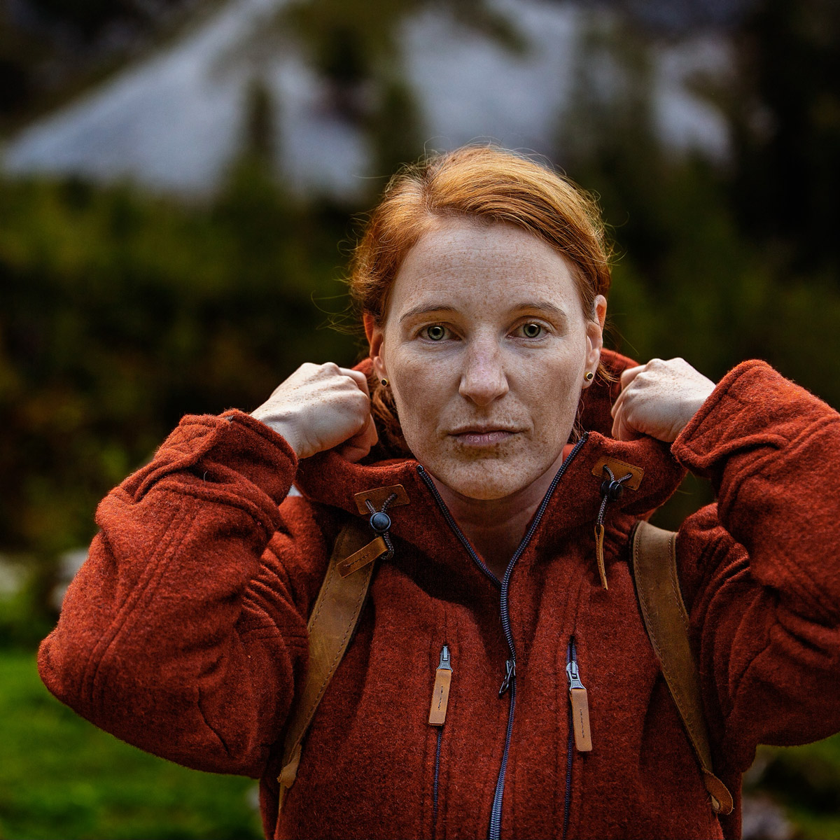 Unser Lodenfleece wird aus 100% reiner Schurwolle gefertigt, ist atmungsaktiv, wärmend und robust. Aufgrund des aufwändigen, beidseitigen Aufrauhungsverfahrens des Lodens ist der Stoff angenehm weich und hat einen hohen Tragekomfort. Das Naturprodukt Loden benötigt nicht viel Pflege: Gerüche verschwinden an der frischen Luft und Verschmutzungen läßt man trocknen und bürstet sie dann raus. Was unseren speziellen Lodenfleece aber ganz besonders macht, sind seine Klimaeigenschaften. Die dichte Webung des Doubleface-Lodens und der feine Flor auf der Oberfläche machen die Jacke nahezu resistent gegen das Eindringen von Wind – und das ganz ohne Membrane! Und genau deshalb, weil wir keine Membrane verbauen müssen, bleibt der Loden-Fleece auch noch sehr atmungsaktiv und sorgt für ein optimales Innenklima. In unseren FAQs gehen wir ausführlich auf das Thema Loden und seine Nutzung ein.