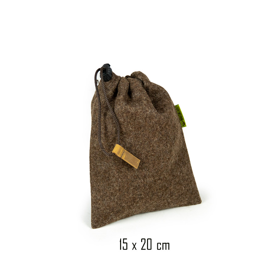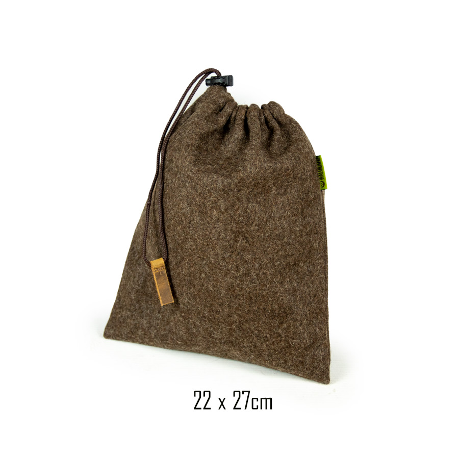 Praktischer Lodenbeutel mit Kordelzug zur Aufbewahrung Ihres Proviants. Der Beutel eignet sich natürlich auch sehr gut, um jegliche anderen Dinge geschützt und geordnet aufzubewahren (auch der Gehörschutz findet hier drin seinen Platz!).