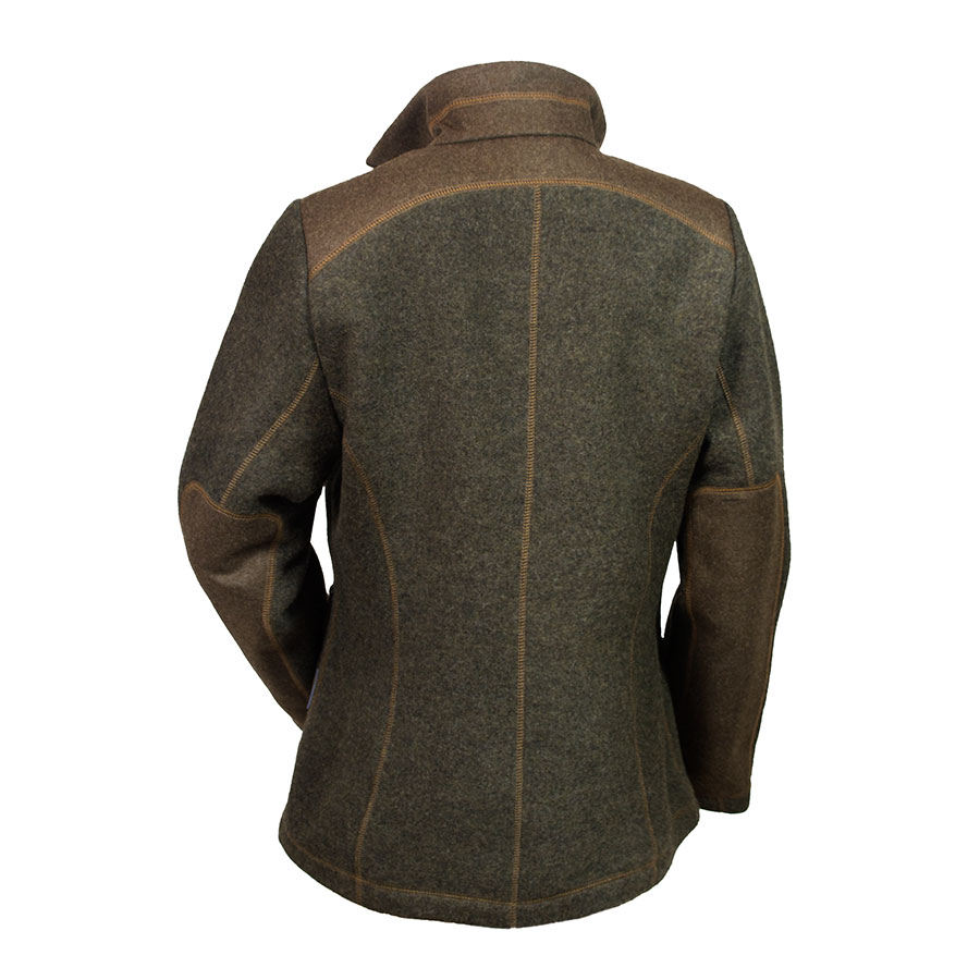 - Verstärkungen aus Loden an Schultern, Kragen und Unterarm
