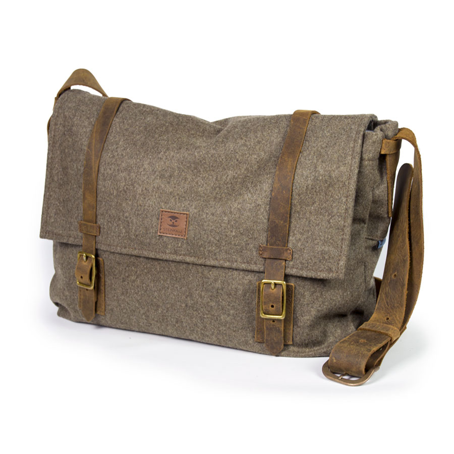 Die Materialqualität unserer Produkte liegt uns genauso am Herzen, wie ihre Verarbeitung und ihr Design. Deshalb machen wir keine Kompromisse bei der Wahl der Materialien für die Herstellung einer STEINKAUZ-Tasche. Dieses Modell besteht aus einem reinen Schurwoll-Loden der für uns in Süddeutschland gefertigt wird. Loden wird traditionell schon seit Ewigkeiten für die Herstellung von Rucksäcken und Bekleidung verwendet. Er hat nach wie vor einen hervorragenden Ruf, wenn es um Wärme, Robustheit und Atmungsaktivität geht. Noch heute ist Loden sehr weit bei Jägern, Wanderern und Bergbauern in den Alpenregionen verbreitet und findet seine Freunde besonders bei den Menschen, die ein gutes Naturprodukt einem synthetischen Stoff vorziehen.Zur Beachtung: Unser mineralgegerbtes Fettnubuk-Leder, das wir für die Riemen einsetzen, ist ein bewährtes und schon lang von uns verwendetes Oberleder. Durch starke Transpiration kann es vorkommen, dass es etwas auf helle Textilien abfärbt. Dieses sollten Sie beachten, wenn Sie die Tasche z.B. im Sommer zum Wandern oder anstrengendem Radfahren benutzen! Die Verfärbungen lassen sich allerdings mit entsprechenden Waschmitteln auch wieder heraus waschen!